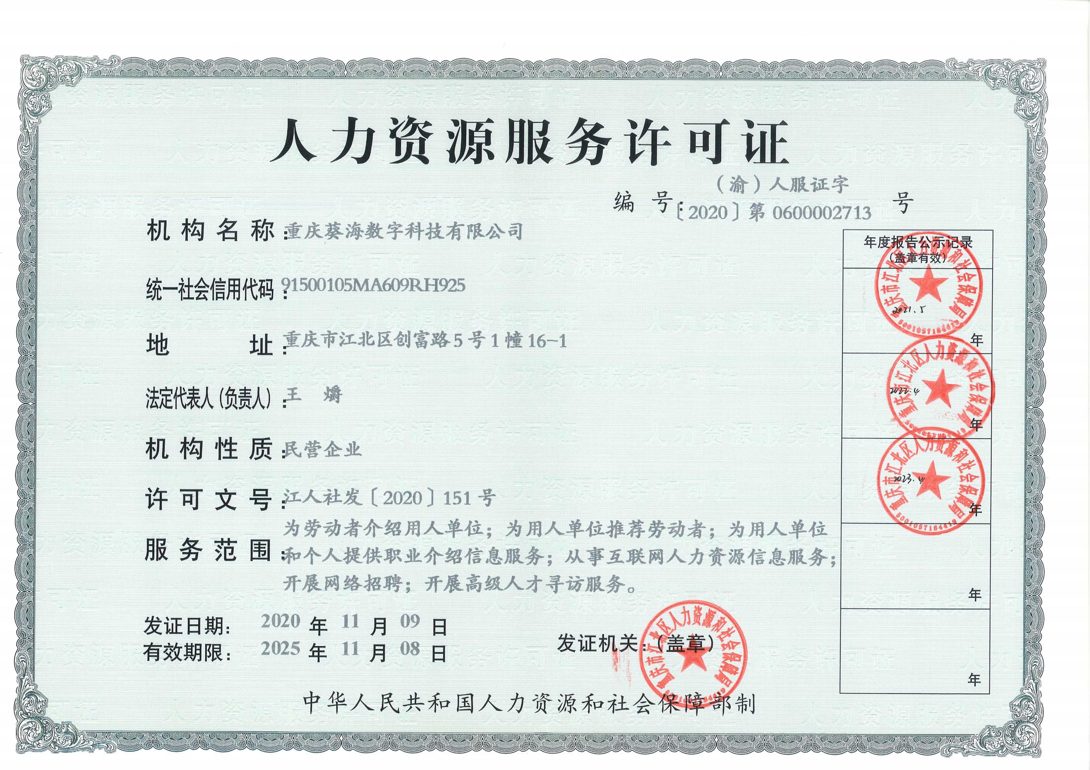 11月,入選重慶市人社局留學人員回國創(chuàng)業(yè)創(chuàng)新支持計劃 取得人力資源服務(wù)許可證;
