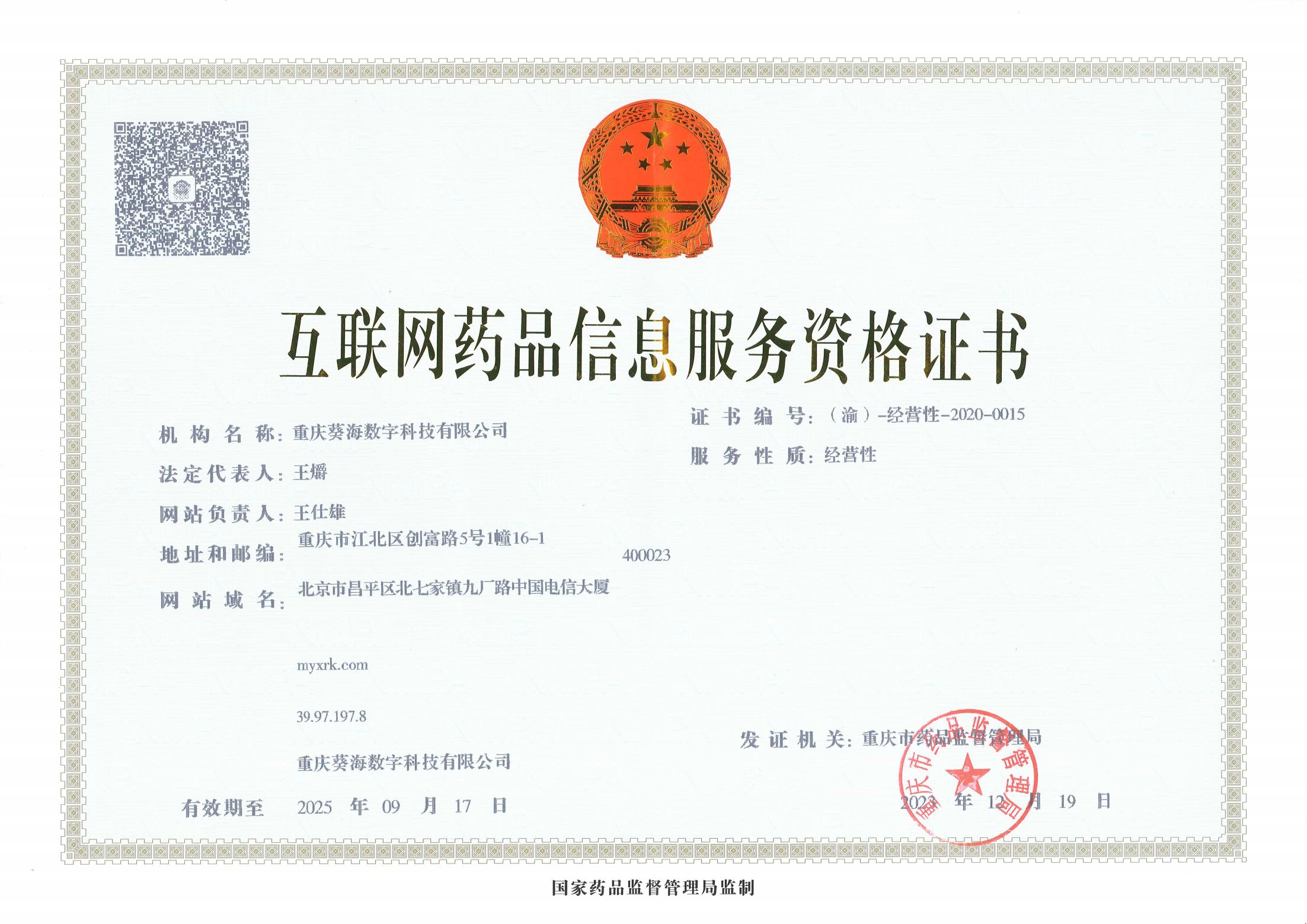 09月,獲得互聯(lián)網(wǎng)藥品信息服務(wù)資格證書;
