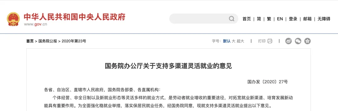 國(guó)務(wù)院:支持創(chuàng)造更多靈活就業(yè)機(jī)會(huì)